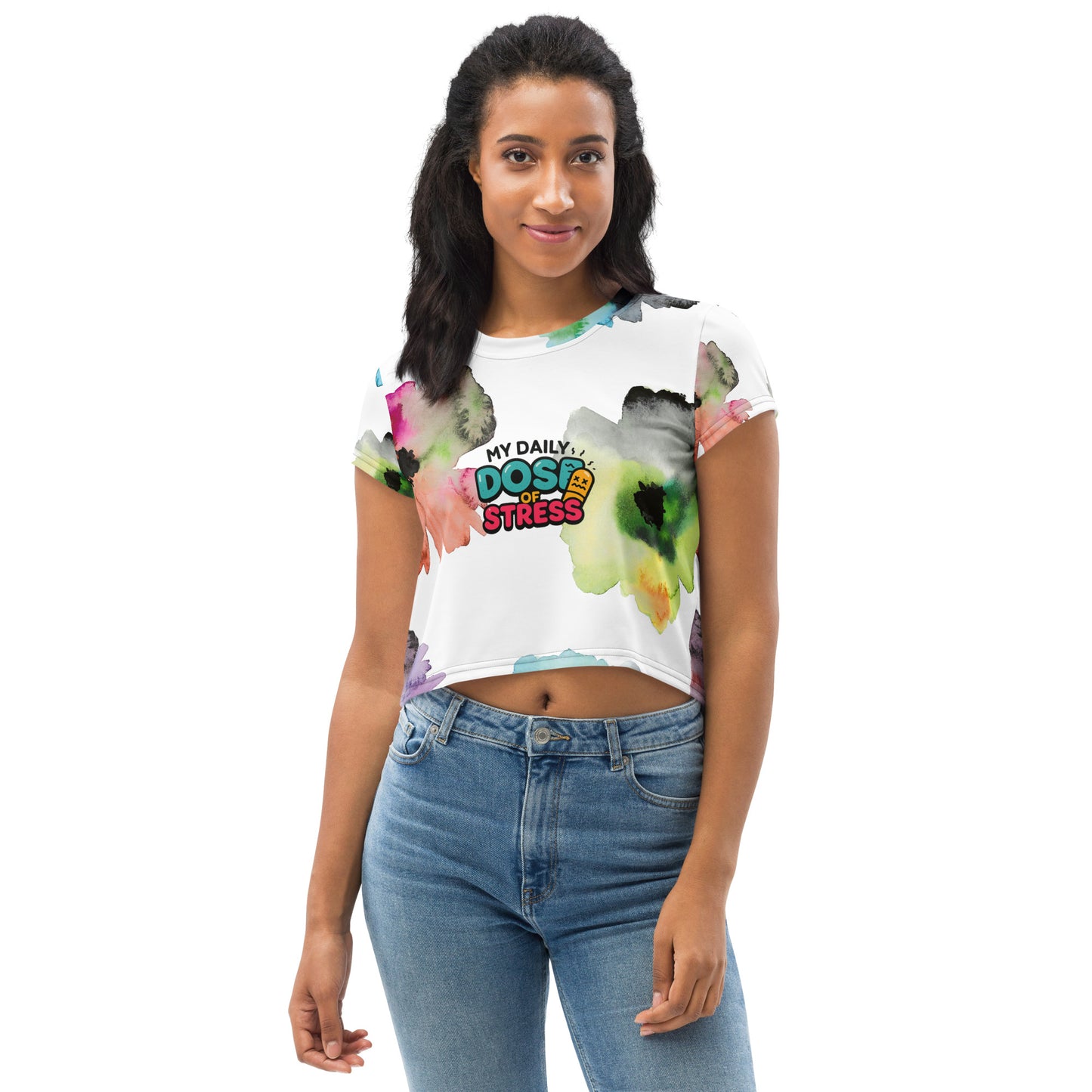 Daily Dose of Stress All-Over Print Crop Tee